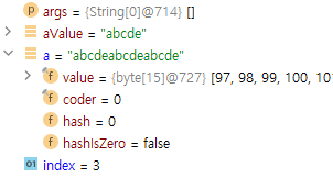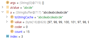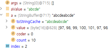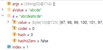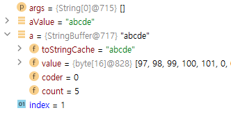 | <p>첫번째 수행 : a += aValue <br><br>723 번지 : gc 대상</p> | <img src="https://1889142648-files.gitbook.io/~/files/v0/b/gitbook-x-prod.appspot.com/o/spaces%2FVfLaXPTe0t3ptNpFbmH5%2Fuploads%2FucTLogpEdLnMdyizZTdZ%2Fimage.png?alt=media&#x26;token=642ed926-2663-48a8-8dc7-23b5e12c7931" alt="" data-size="original"> |