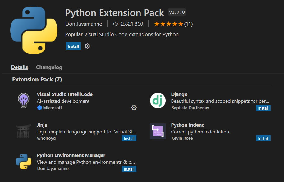 2\. 검색창에서 설치를 원하는 확장팩을 입력하고 엔터를 누르면 목록이 표시되면 원하는 것을 찾아서 설치하면 됩니다.