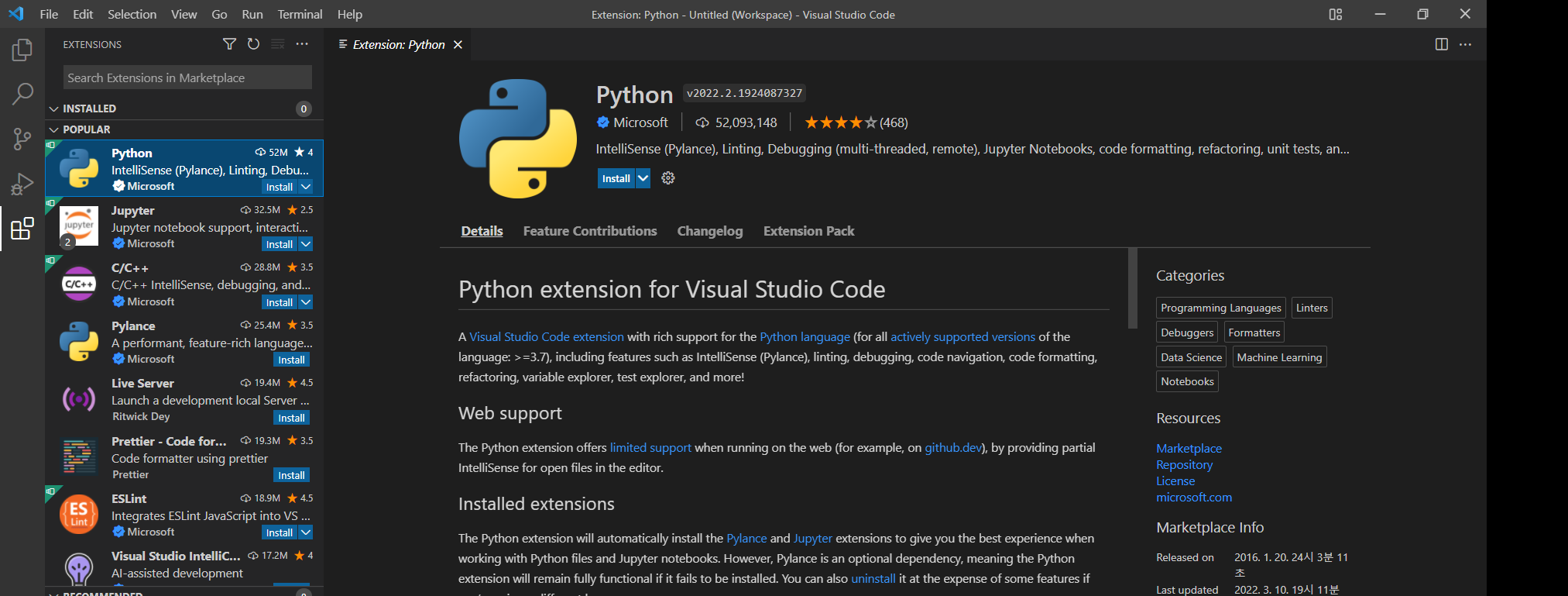 VS Code는 프로그램 작성에 도움을 주는 다양한 확장팩이 있습니다.